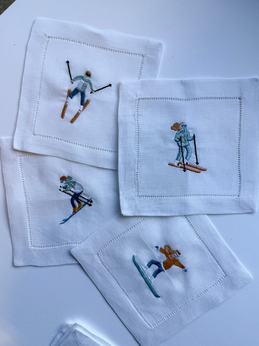 Winter Sports Embroidered Cocktail Napkins- Set of 4