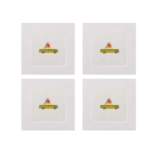 Christmas Taxi with presents Embroidered Cocktail Napkins- Set of 4