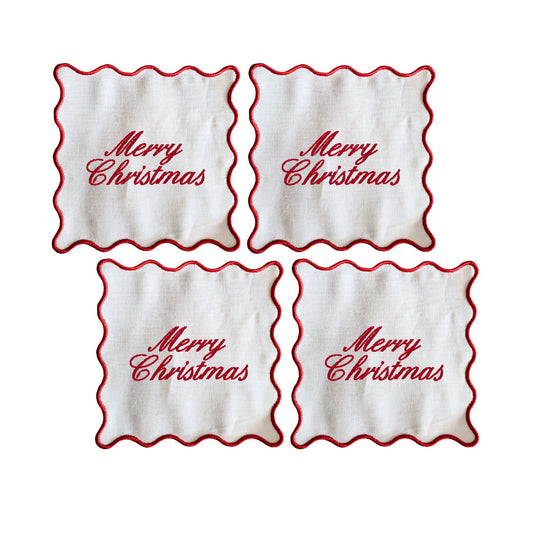 Santa Wavy Embroidered Cocktail Napkins- Set of 4