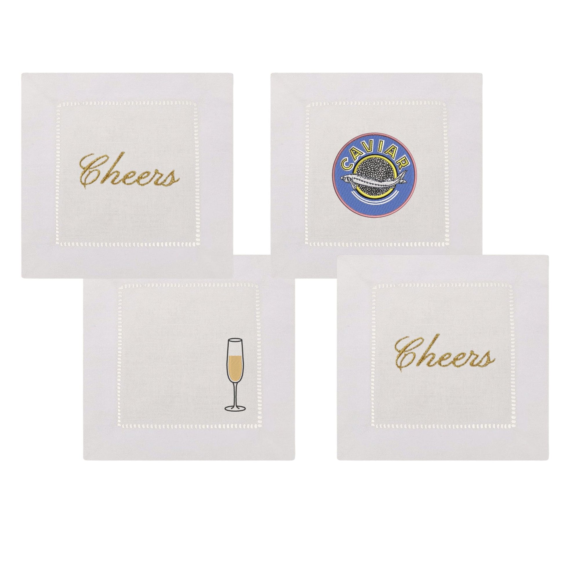 Champagne & Caviar Embroidered Cocktail Napkins- Set of 4