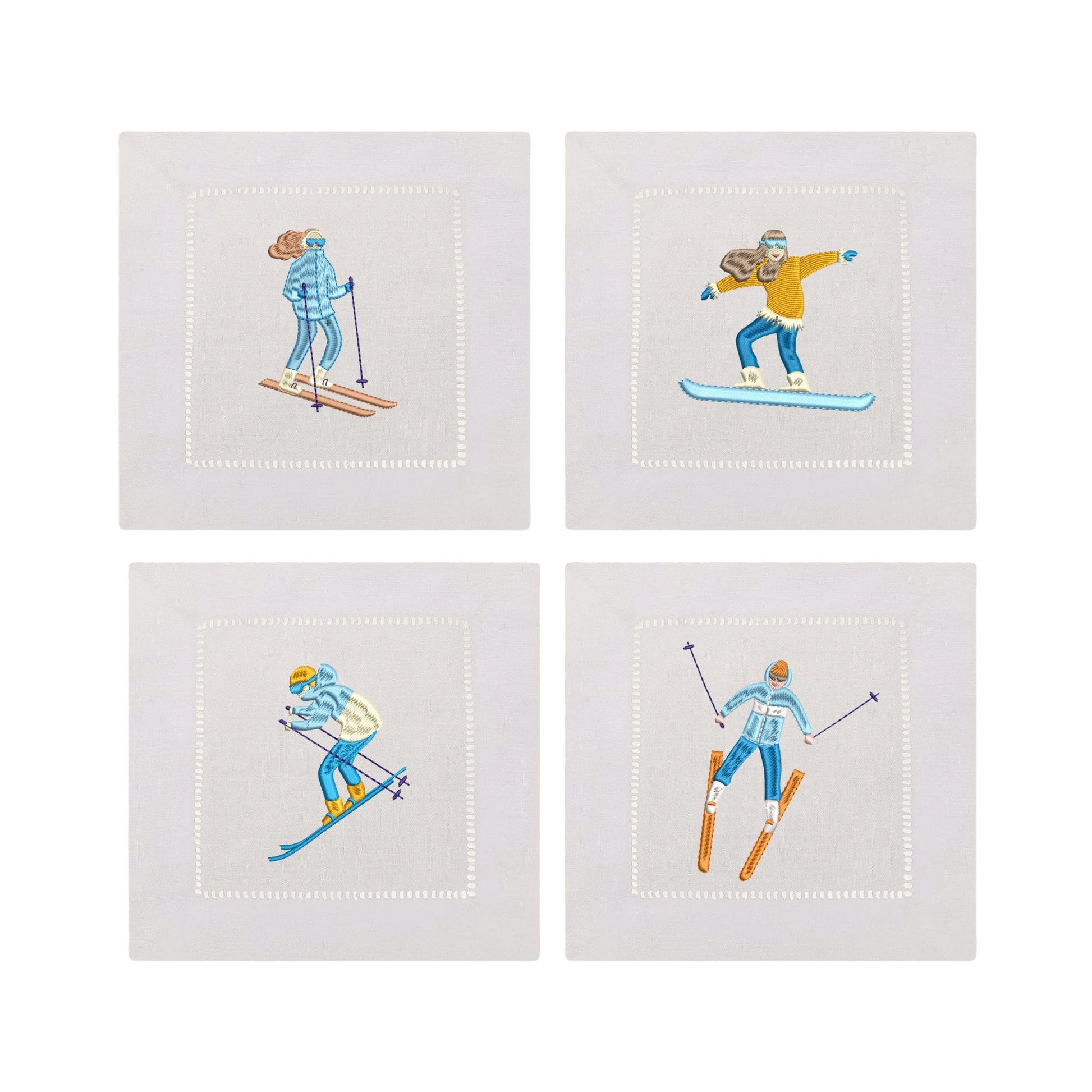 Winter Sports Embroidered Cocktail Napkins- Set of 4